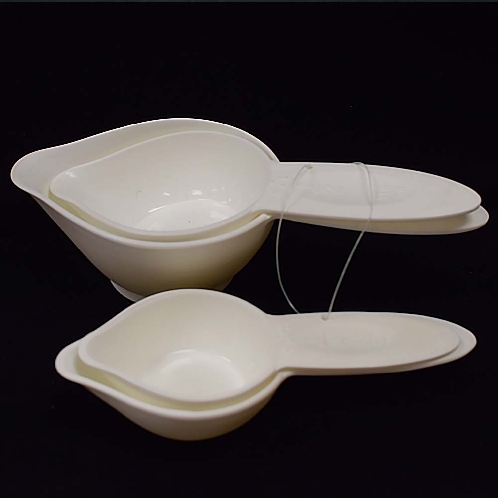 These plastic measuring cups are labeled in print and Braille and include a metric measurement in print. The following measuring cups are included: 1/4, 1/3, 1/2, and 1 cup.
