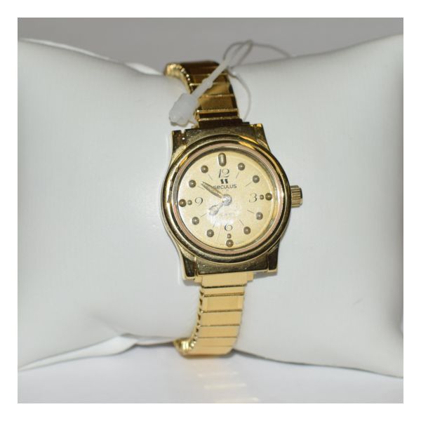 This Swiss-made, tactile watch features a gold-tone, 3/4-inch face with gold-plated case, and gold-plated expansion band.